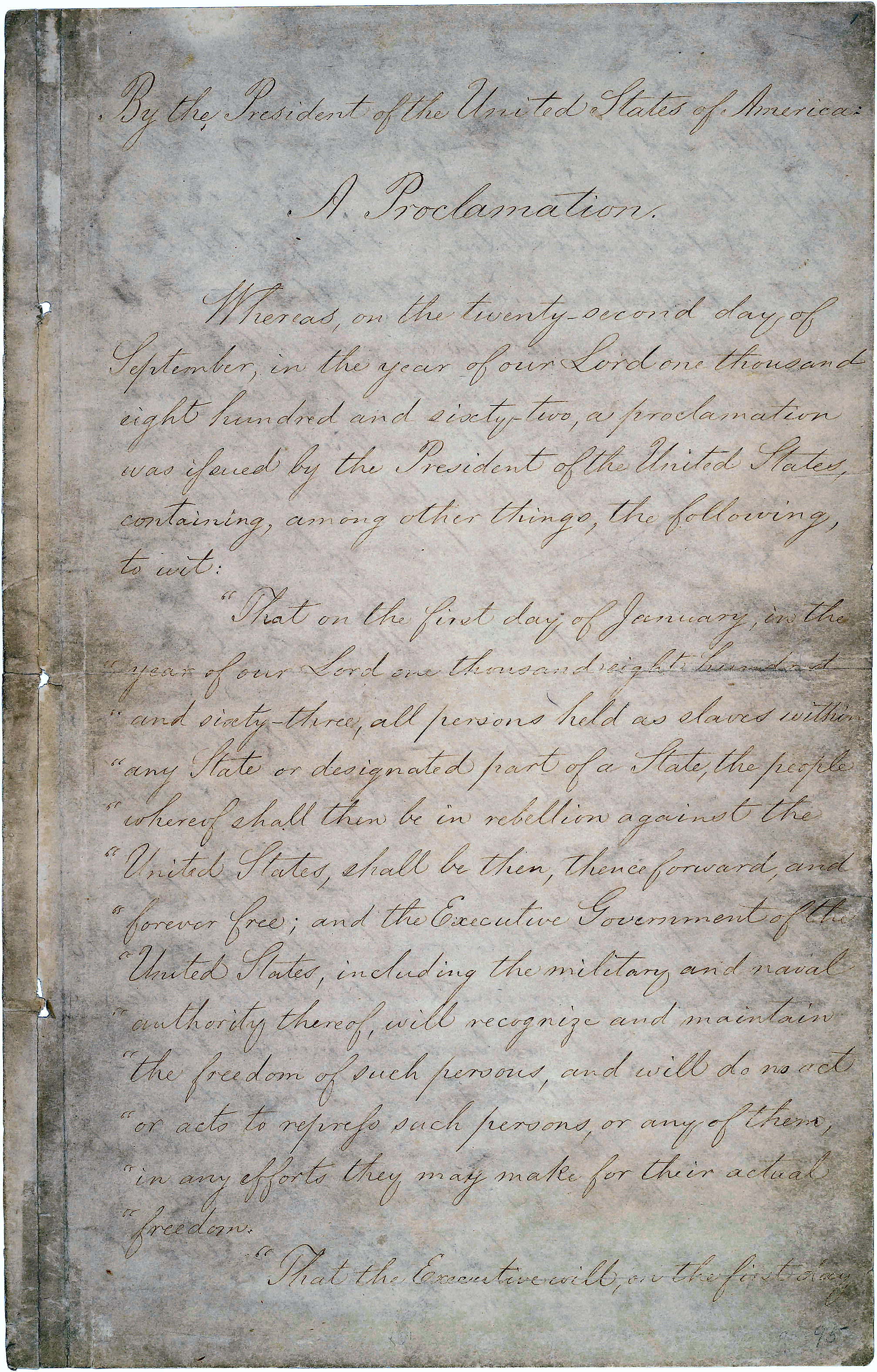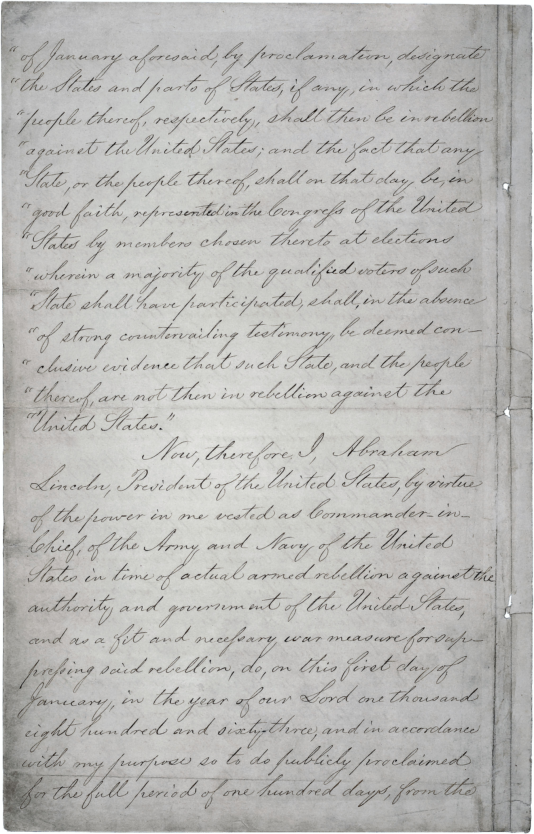 therefore I, Abraham Lincoln, President of the United States, by virtue of the