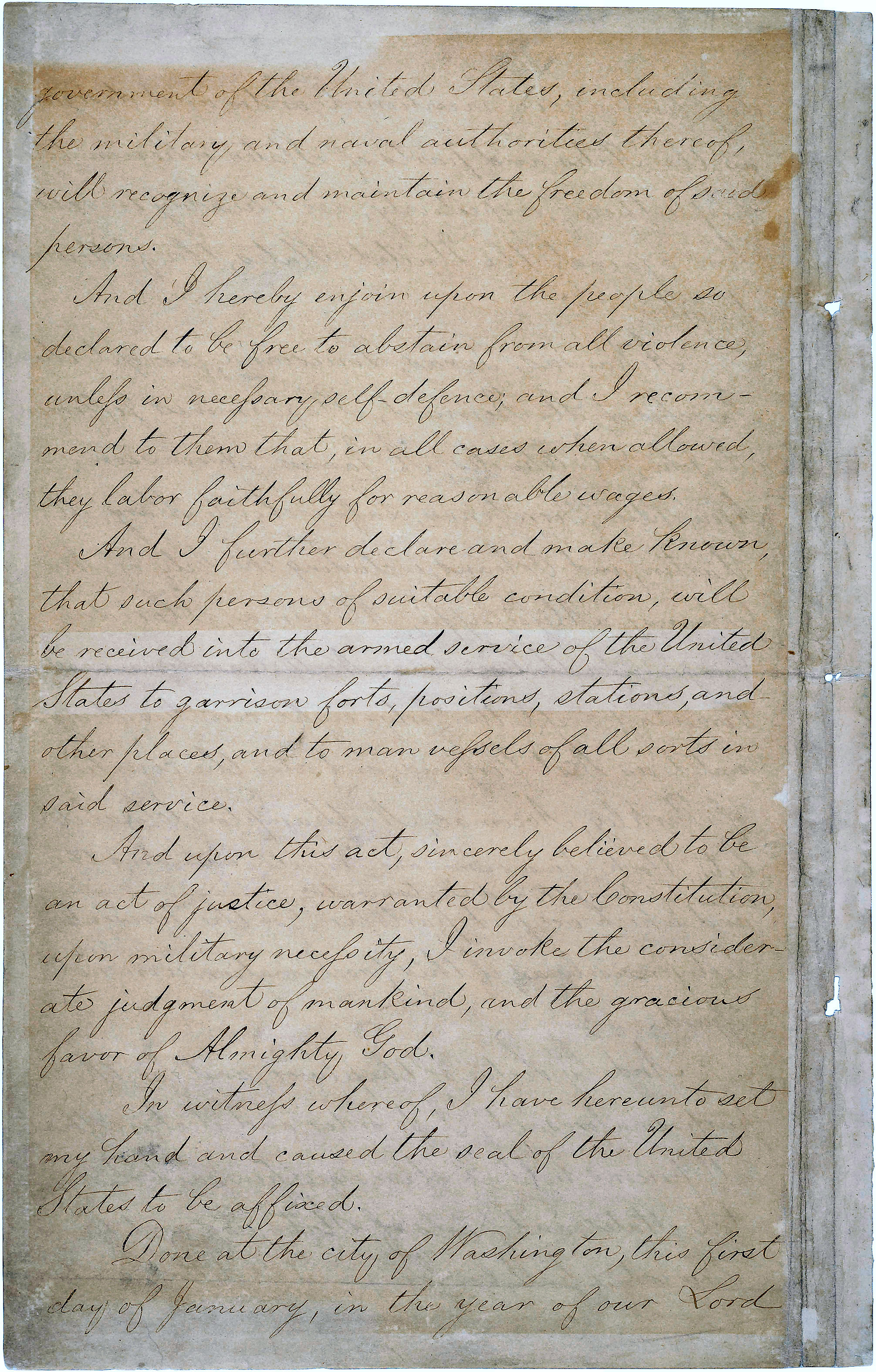 And I hereby enjoin upon the people so declared to be free to