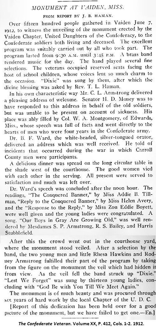 1912 Article in The Confederate Veteran (Volume XX, P. 412) by J.B. Haman Describing
