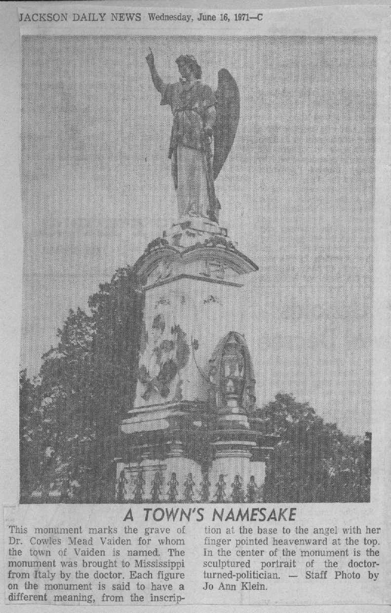 last, that Noblest Work of God, An Honest Man. Town Namesake -- History of the Vaiden Statue Daily Clarion Marker